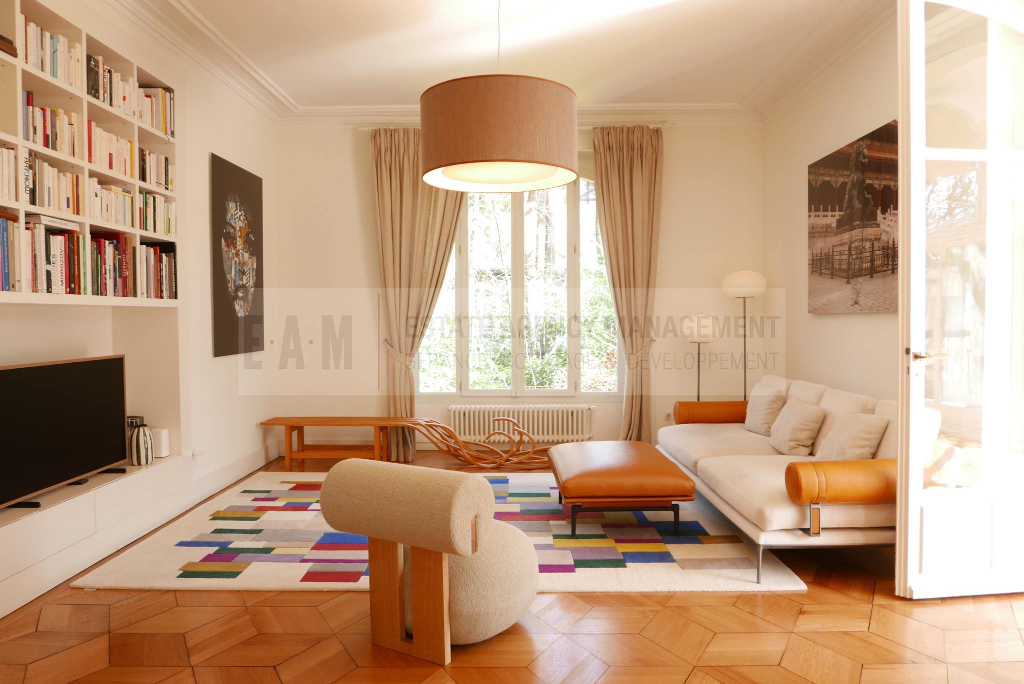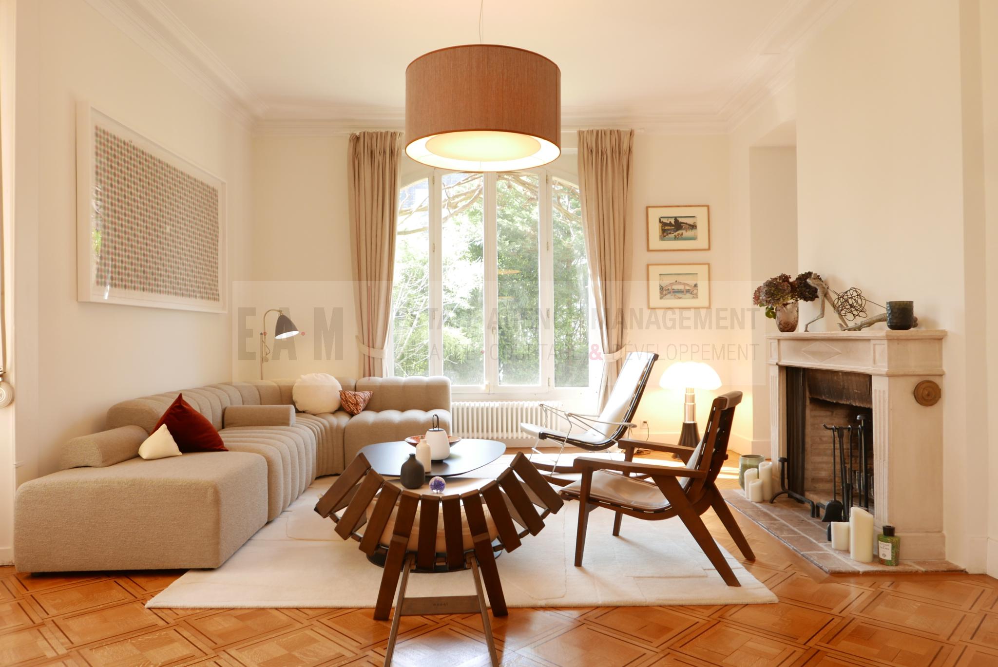 EAM is pleased to offer this rare listing for sale. Dated from the early XXth century, this authentic "Maison de Maître", designed by the renowned architect Antoine Leclerc, is ideally located on a quiet and prestigious street within the most sought-after area in the heart of Chêne-Bougeries in Geneva. The villa is spread over 450 sq.m., 590 sq.m. including the basement, and seats on a generous plot of nearly 3000 sq.m.